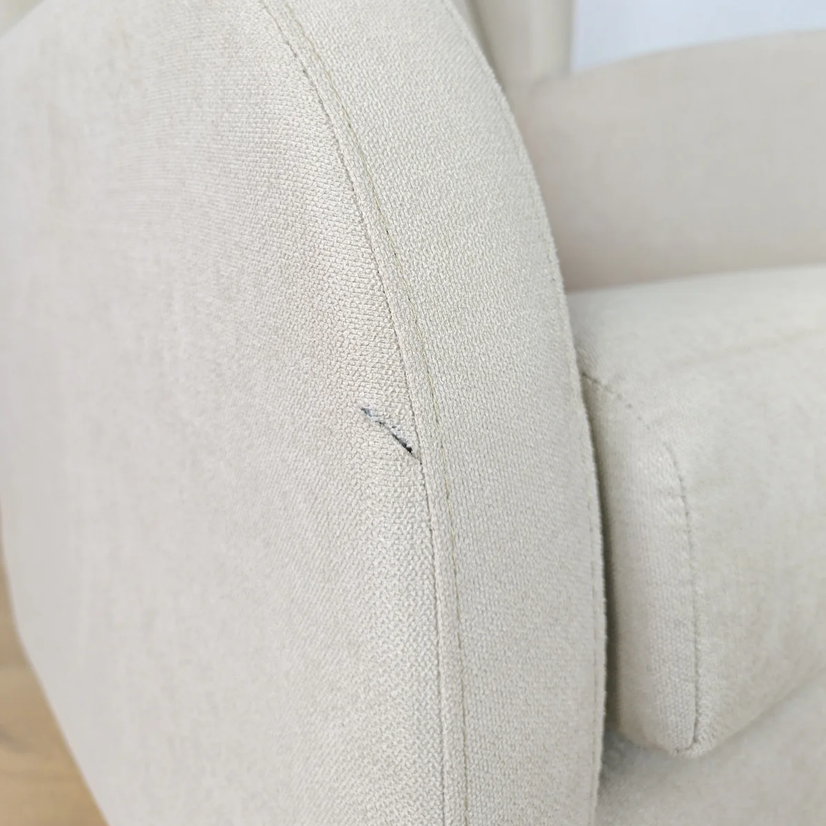 Pequeño corte en la tela, parte del exterior del brazo.