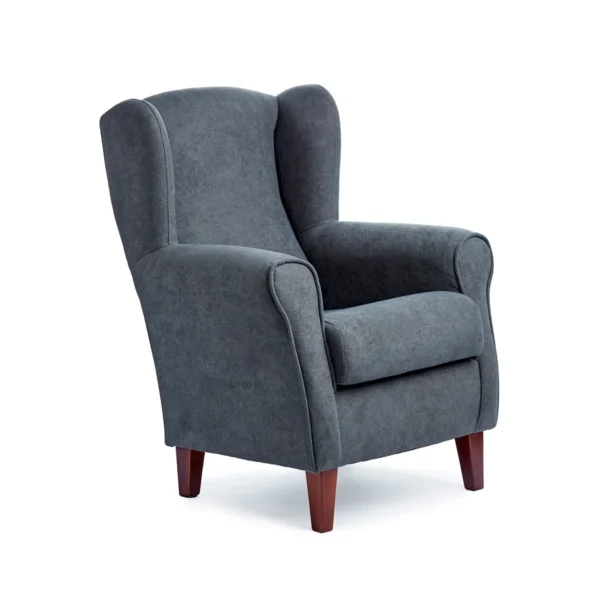 Su estructura compacta incluye un respaldo y asiento ergonómicos, ofreciendo la misma comodidad y soporte de un sillón orejero tradicional, pero en una versión más delgada. Los brazos reducidos le dan un toque elegante y moderno sin perder la sensación envolvente.