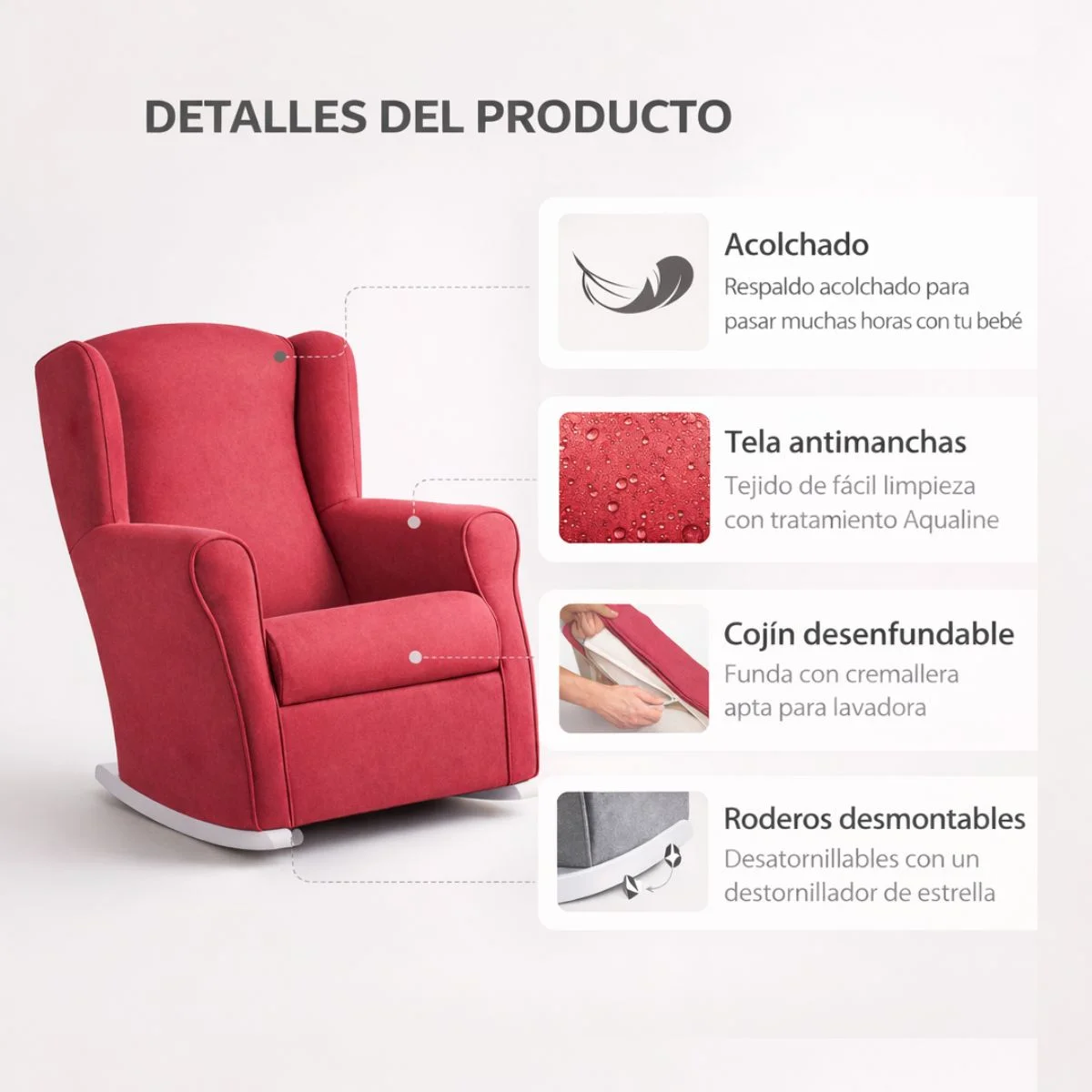 El sillón de lactancia que ofrecemos es la solución ideal para ayudar al bebé a conciliar el sueño mediante el suave balanceo del balancín. Con un ritmo constante y reconfortante, el bebé se sentirá arropado por el calor de sus padres, sin que estos tengan que permanecer de pie o dar vueltas por la habitación. Esta butaca orejera balancín se convierte en la mejor aliada para el descanso de toda la familia.