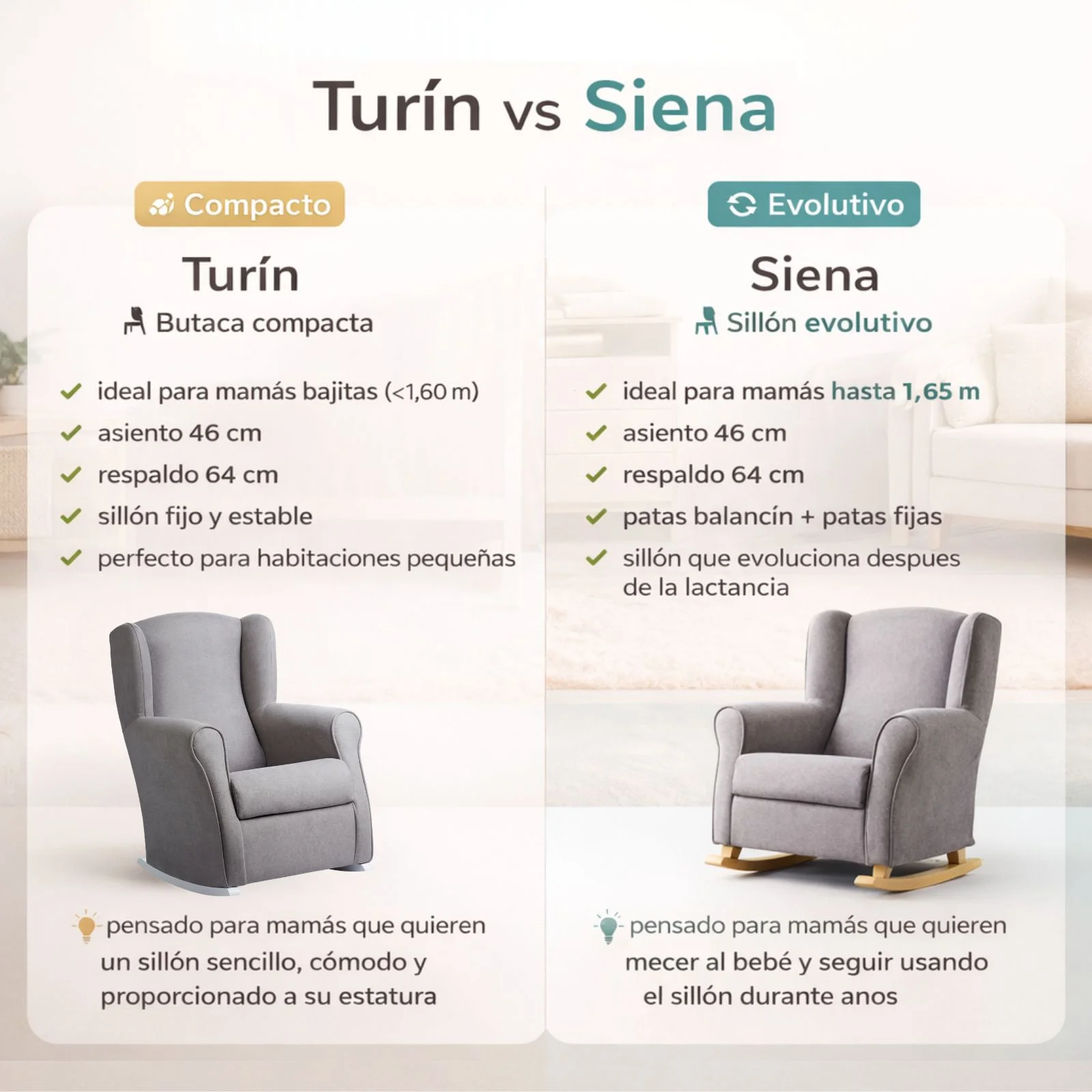 🍼 Sillón de lactancia evolutivo Turín (talla S) — diseñado para mamás bajitas y de complexión pequeña