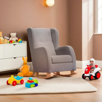 Este confortable sillón de lactancia evolutivo en gris está diseñado para ofrecer una durabilidad excepcional. Sus patas permiten balancearse suavemente, facilitando el sueño del bebé, pero también incluye patas fijas que puedes instalar cuando el niño crezca. Así, el sillón puede transformarse en un cómodo asiento de lectura o en una elegante pieza para el dormitorio.