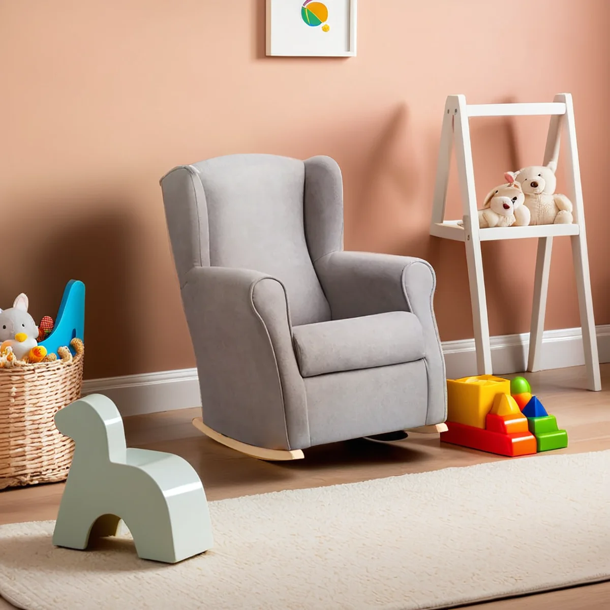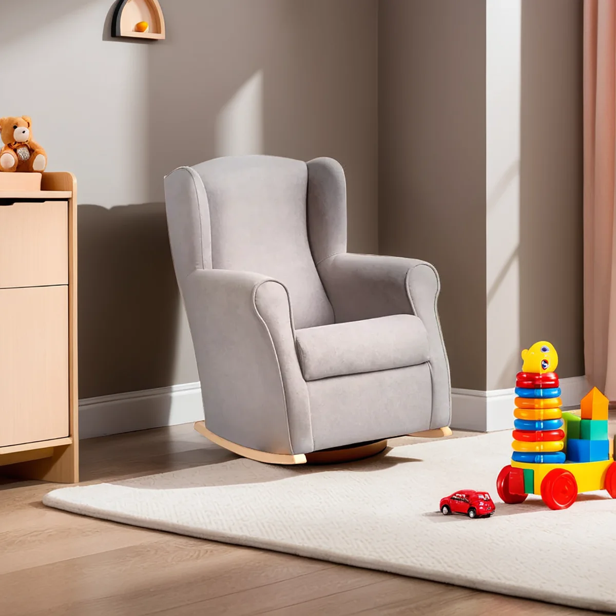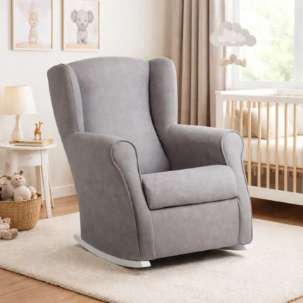 Nuestra mecedora de lactancia tapizada en suave tela gris te ofrece el confort ideal para amamantar o arrullar a tu pequeño. Este sillón de lactancia cómodo cuenta con balanceo suave, apoyabrazos acolchados y un diseño ergonómico que asegura tu bienestar y el de tu bebé. Además, su elegante color gris añade un toque moderno y versátil a cualquier habitación.