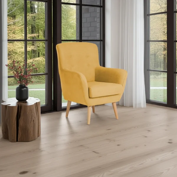El Sillón Sevilla, con su respaldo adornado con múltiples botones, ofrece un toque distintivo y contemporáneo que resalta en cualquier ambiente. Inspirado en el estilo nórdico, su diseño elegante combina con decoraciones escandinavas o minimalistas, aportando un aire moderno y acogedor. La estructura de madera robusta y de gran belleza no solo proporciona estabilidad y durabilidad, sino que también añade un elemento de elegancia natural, característico de los sillones de diseño nórdico.