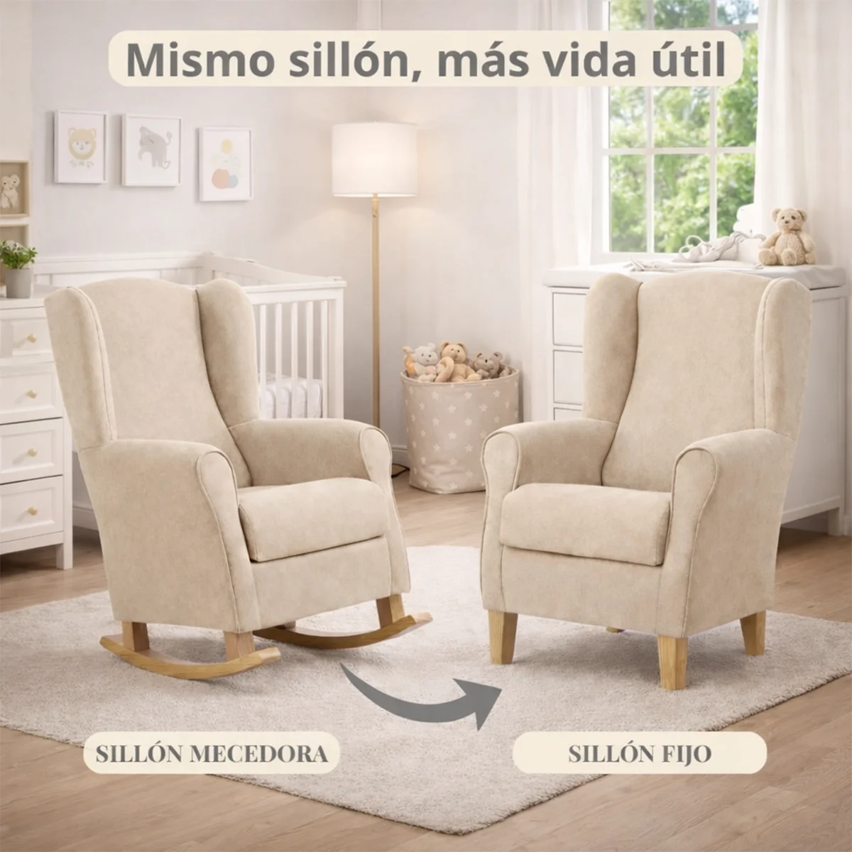 - Si quieres un modelo evolutivo que te sirva ahora como mecedora y después como sillón fijo para seguir usándolo a diario.
