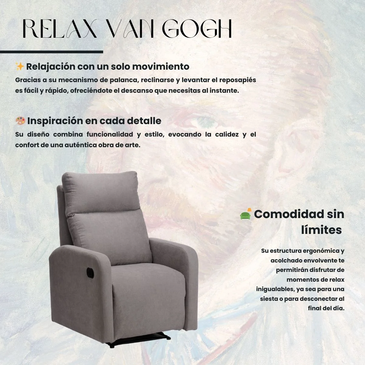 No renuncies al confort. Pide ahora tu sillón Van Gogh y transforma tu descanso.