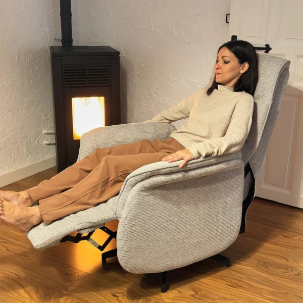 El sillón relax eléctrico giratorio Oslo es una opción ideal para madres lactantes que buscan un rincón de calma y confort. Gracias a su doble motor, puedes ajustar el respaldo y el reposapiés de forma independiente, permitiéndote encontrar la postura perfecta para dar el pecho o el biberón, sin tensiones en la espalda ni las piernas. Todo se controla desde su mando con movimientos suaves y silenciosos, ideales para no despertar al bebé.